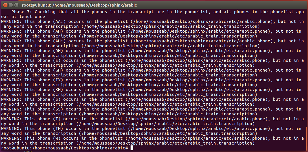 when i run the command to set up my database sphinxtrain -t arabic setup