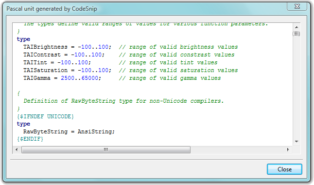 Units and Pascal include files can also be exported as syntax highlighted XHTML or srich text files. The Pascal syntax highlighter can be customized.