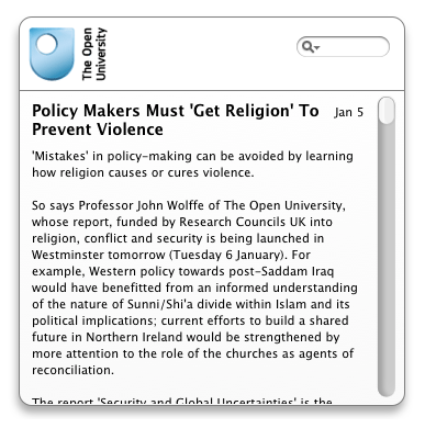 The Open University is the world's leading provider of flexible, high quality online degrees and distance learning. Get The Open University News right from your Mac OS X Dashboard.