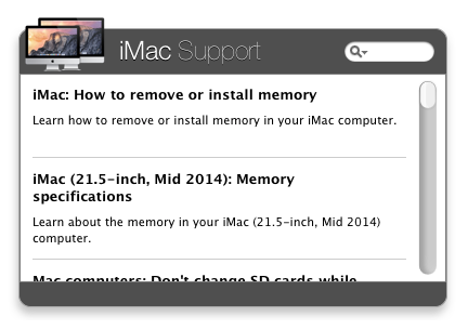 Get iMac Support right in to your Mac OS X Dashboard.