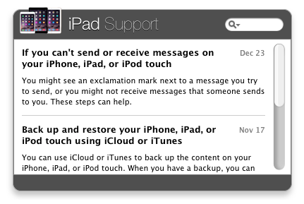 Get iPad Support right in to your Mac OS X Dashboard.