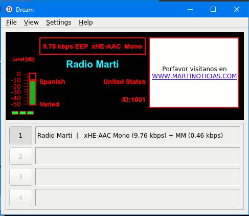 Believe it or not, it works! Audio starts to play when the SNR reaches around 11dB. When the signal is below that, you'll see a lot of failed decoded messages or buffer errors. Eventually DReaM might crash. Just relaunch it.