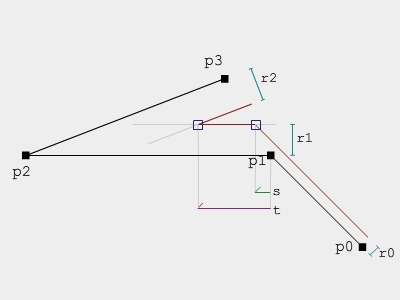 I've gotten the basic solver working, but I'm still struggling with how to deal with additional constraints, such as: -drive r[] values towards targets (minimize ||targ[i] - r[i]||) -enforce a minimum allowable r value (make sure r[i] > rmin) Currently I'm adding these as additional constraints the solver has to deal with; this makes sense for enforcing the minimum allowable value, but it seems wrong to drive r[] values towards targets using constraints, since they almost always directly "fight" with the main constraints.. causing the solver to fail to converge to a solution. Raigan --- On Fri, 12/5/08, metanet software <met...@ya...> wrote: > From: metanet software <met...@ya...> > Subject: [Algorithms] Solving a system of line equations -- Simple Version ; ) > To: gda...@li... > Received: Friday, December 5, 2008, 10:20 AM > My first form of this question was needlessly obtuse, this > version should be much more comprehensible! > > I have the following system: > http://www.harveycartel.org/raigan/system.jpg > > I'd like to solve for r0,r1,r2 such that s < t; > obviously setting r0=r1=r2=0 is a trivial solution; I'm > more interested in driving r0,r1,r2 towards target values > r0max,r1max,r2max while maintaining the constraint s < t. > > My current plan is to construct the constraint equation C = > s - t < 0 and then solve for the r values (by calculating > the partial derivatives of C wrt r[i] and doing a > non-linear-least-squares fit as in > http://www.matthiasmueller.info/publications/posBasedDyn.pdf > ). > > However even if this works, I have no idea how to > simultaneously minimize (rmax[i] - r[i]), i.e how I should > drive the r values towards target values while obeying C. > > Sorry for the totally obfuscated initial question.. thanks > for your time! > > Raigan > > p.s - Just in case it's not clear from the diagram, s > and t are the parametric times of intersection between > lines; each line is parallel to a segment (p[i+1] - p[i]) > and passes through the point p[i] + r[i]*Perp(p[i+1] - > p[i])/Len(p[i+1] - p[i]).. i.e each line is just a > linesegment offset along its normal. > > > > > __________________________________________________________________ > Looking for the perfect gift? Give the gift of Flickr! > > http://www.flickr.com/gift/ > > ------------------------------------------------------------------------------ > SF.Net email is Sponsored by MIX09, March 18-20, 2009 in > Las Vegas, Nevada. > The future of the web can't happen without you. Join > us at MIX09 to help > pave the way to the Next Web now. Learn more and register > at > http://ad.doubleclick.net/clk;208669438;13503038;i?http://2009.visitmix.com/ > _______________________________________________ > GDAlgorithms-list mailing list > GDA...@li... > https://lists.sourceforge.net/lists/listinfo/gdalgorithms-list > Archives: > http://sourceforge.net/mailarchive/forum.php?forum_name=gdalgorithms-list __________________________________________________________________ Yahoo! Canada Toolbar: Search from anywhere on the web, and bookmark your favourite sites. Download it now at http://ca.toolbar.yahoo.com. |