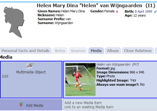 The second is to add media objects to the database and to link these objects to people, families, and sources in the database. This process is done when you edit a media file. You're not actually editing the file, you're editing information about the file. The best place to do this is the Manage Media page, although there are other, more clumsy, ways of doing it.