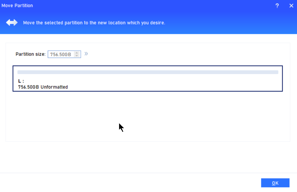 I tried Easeus, AOMEI. Minitool and Disk Genius. Only AOMEI offers the option to move/resize the partition in the context menu for the partition, but It offers nowhere to move it.