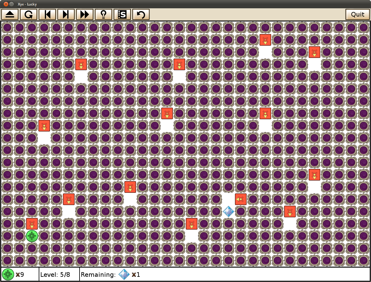 [plain]Finally, get ready to find some levels that are really about obscure aspects of Xye. Like Lucky, a level in which you will have to magically teleport 9 times. Do something wrong and you may even make the game crash. (Don't worry, I have already caught the crash bug and the next version a crash will no longer happen. You will lose the game though.)[/plain]