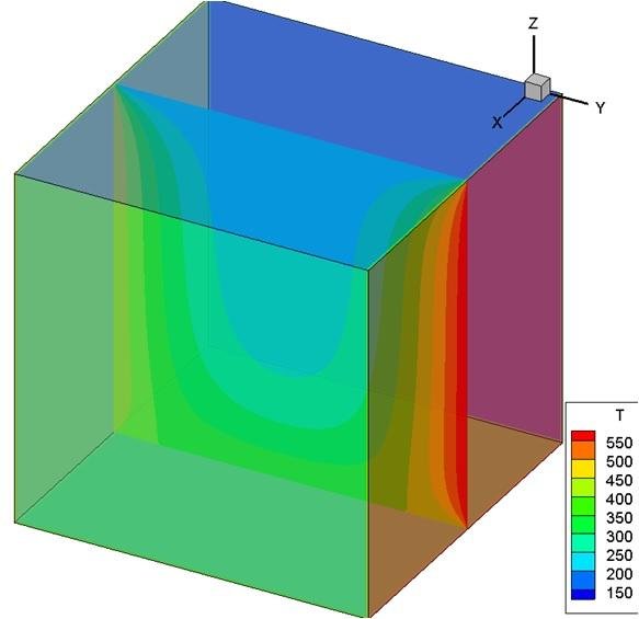 The six boundaries are heated to 100 C, 200 C, 300 C, 400 C, 500 C and 600 C respectively.