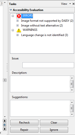 AccessODF is an extension for ODF accessibility evaluation and repair in LibreOffice Writer and OpenOffice.org Writer. It supports the creation of word processing documents that are more accessible for people with disabilities, and checks the compatibility with DAISY and Braille.