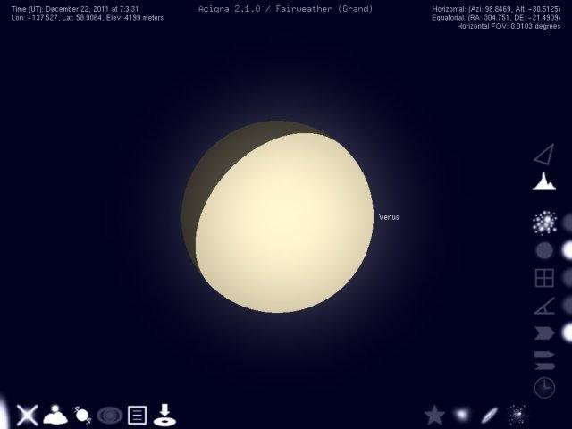 Aciqra is a virtual planetarium and sky mapping program which tracks celestial bodies including planets, deep sky objects and stars to an accuracy of a fraction of a degree for thousands of years into both the future and the past. It includes the 2.5 million stars of the Tycho-2 catalog supplemented by data of 120,000 stars from the Hipparcos catalog, 13,000 deep space objects from the NGC and IC catalogs and a large number of asteroids and comets from the Minor Planet Center. The program is platform-independent and can be made to work on most modern computers that support OpenGL.