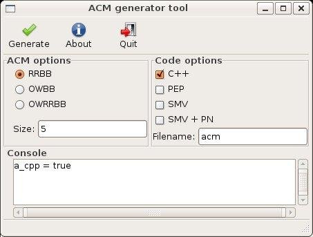ACMgen is an automatic code generator of Asynchronous Communications Mechanisms based on the generation of Petri nets models that can be formally verified against some properties and then transformed into a real implementation (e.g. C++ or Verilog).