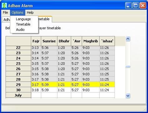Adhan Alarm is a fully internationalizable application that plays the Islamic prayer call (adhan) at its designated time. The audio and timetable is fully customizable by the user. Daily and annual prayer times are displayed in a nice color coded table.