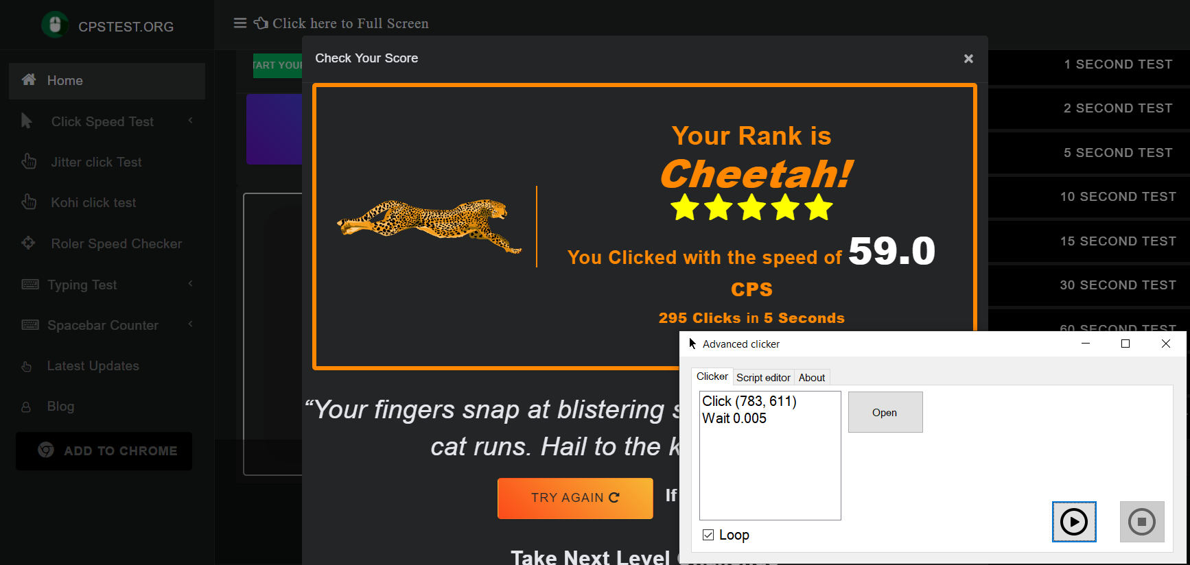 - Load a script and loop it once or endlessly
