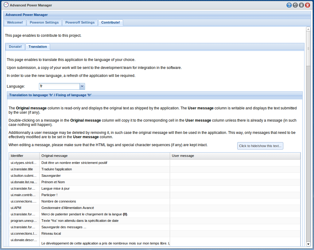 - Self-translatable user interface to any language