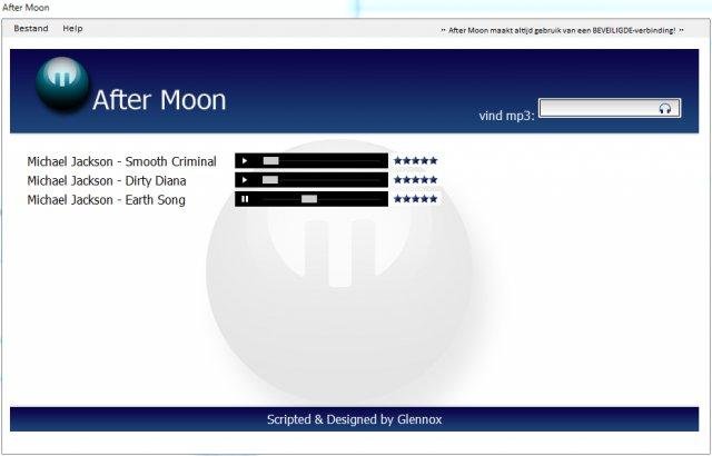 AfterMoon is een programma gemaakt door Nederlandstalige studenten. Dit programma is in staat muziek-nummers in de beste kwaliteit af te spelen zonder ze te downloaden, en dat in maar een paar klikken. Overzichtelijk, snel en gratis, daar staat en ga