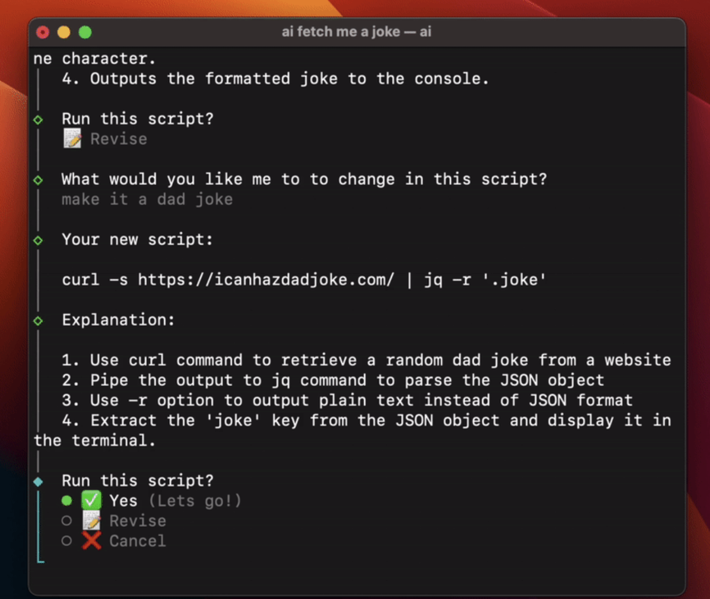 - Converts plain language prompts into shell commands