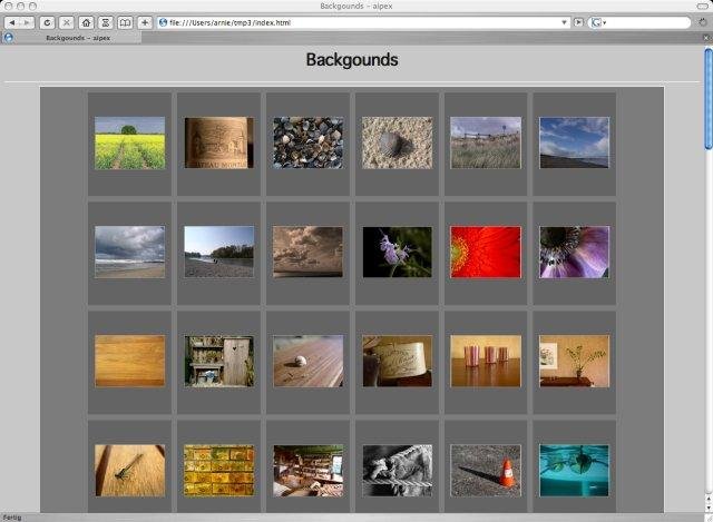 aipex is an easy-to-use html-photo-album generator. The generated albums are targeted to be "simply nice" with an inviting and clear design. Images can be imported and scaled either from iPhoto albums or any directory on the filesystem.