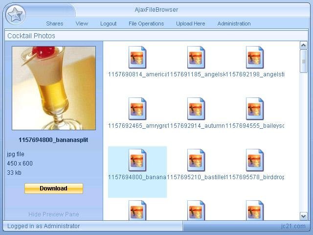 Ajax File Browser is a PHP application that allows you to share and administer files on your server with a Web 2.0 look and feel. User accounts and permissions can be applied to Shares (sources) for more control.