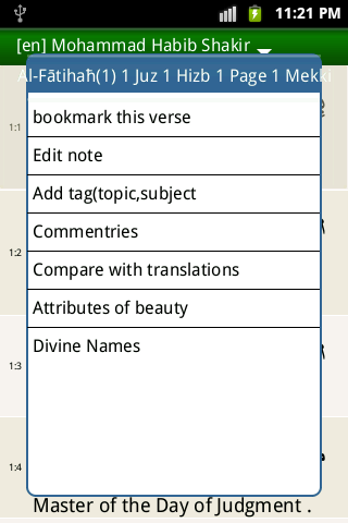 Salaam, This was one of best programs ever seen. I have some suggestions: 1- develop the synonyms finder ( for example it can find معرفت ، عرفان ، عرف ، یعلم ، تعلمون for synonyms of علم and by selecting each , the program can find it in holy Quran ) 2- put one or some Quranic dictionary ( for example مفردات الفاظ قرآن: راغب اصفهاني or at least add an Arabic-Persian dictionary ) 3-please explain how we can add our .mp3 and .txt files that have download it before from other sites and softwares to interpretation and sounds database of this software. (your site has problem , please correct it as fast as you can) I will thank you again for your great program جزائک الله خیرا کثیرا