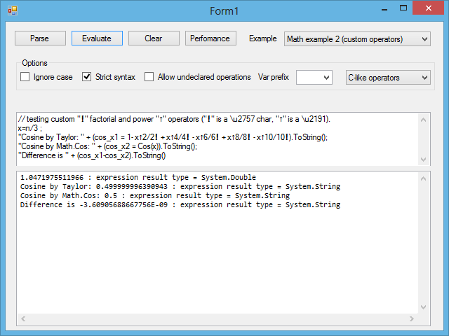 Expressions may have user-defined operators, user-defined variables of any type, user-defined functions, user-defined classes with methods and properties, object constants, arrays and collections with indexes, assignment to variables and properties of objects.