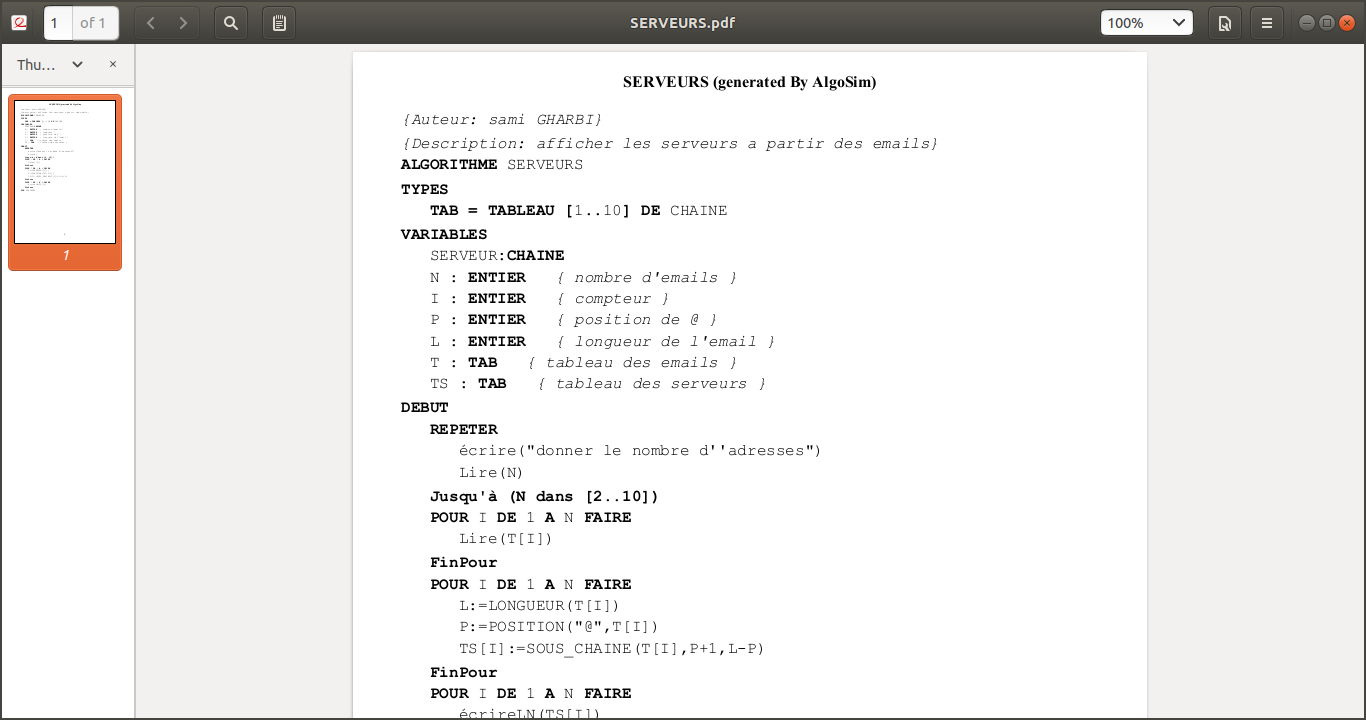 AlgoSim un Logiciel de création, analyse, simulation et exécution des algorithmes. Il ne nécessite aucun apprentissage de langage de programmation. Ce logiciel n'utilise pas un éditeur de texte comme les logiciels classiques de programmation. Ce logiciel peut être utilisé par des débutants pour apprendre la programmation et exercer leurs connaissances. Il peut être utilisé par des professionnel pour tester leurs algorithmes, les vérifier et générer des programme présentables (pseudo-code ou programme Pascal) .