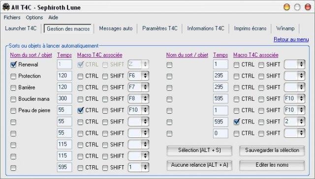 All T4C add a lot of option for T4C, like spells informations "in game", screens shoots, winamp control "in game", a launcher, ... You can choose your language, between french or english, for All T4C and for informations about T4C.