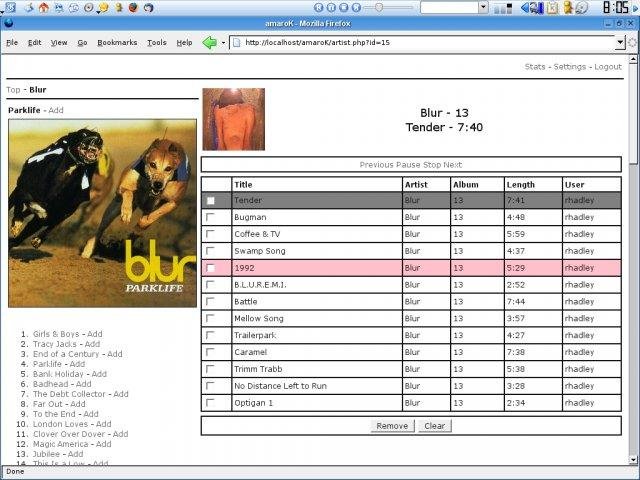 amaroK Web is a jukebox interface to the KDE amaroK media player. It allows multiple people the ability to control a single amaroK instance through a web ui. It works great for our small office.