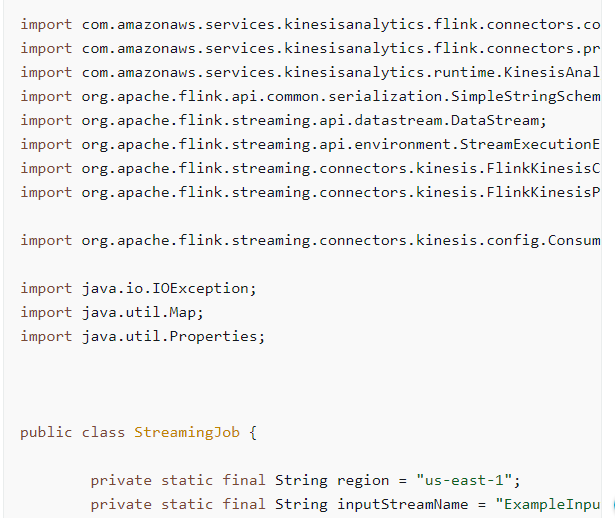 This library contains various Apache Flink connectors to connect to AWS data sources and sinks. This repository contains various Apache Flink connectors to connect to AWS Kinesis data sources and sinks. Flink maintain backwards compatibility for the Sink interface used by the Firehose Producer. This project is compatible with Flink 1.x, there is no guarantee it will support Flink 2.x should it release in the future. An Apache Flink application is a Java or Scala application that is created with the Apache Flink framework. You author and build your Apache Flink application locally. Applications primarily use either the DataStream API or the Table API. The other Apache Flink APIs are also available for you to use, but they are less commonly used in building streaming applications. The Apache Flink DataStream API programming model is based on two components.