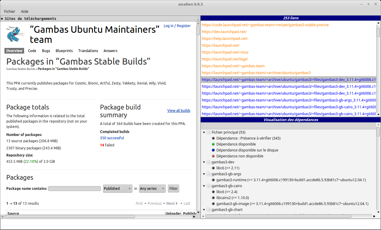 Permet de récupérer tous les fichiers.deb liés d'une page web. Après lecture des fichiers.info, constitution des listes des dépendances présentent et nécessaire.\\Allows you to retrieve all the linked.deb files from a web page. After reading the.info files, constitution of the lists of dependencies present and necessary.