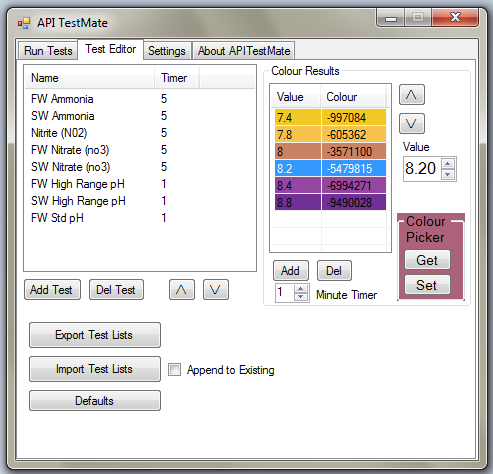this is a simple timer that by default has 8 API water test kit result colour charts added.