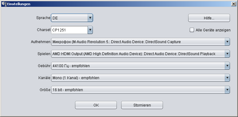 - Selecting capturing, ouput devices and quality