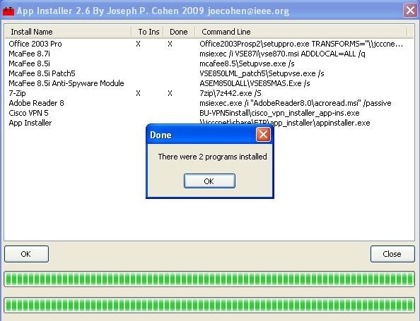 This utility allows an IT professional to install several programs with a single click. It is designed to launch from a network share and suppress any Windows security questions about launching programs.