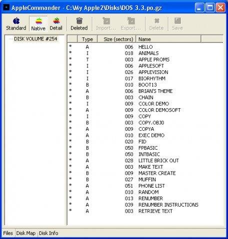 AppleCommander is a tool that manipulates Apple ][ disk images. Files may be imported, exported, viewed, or printed with various file filters.