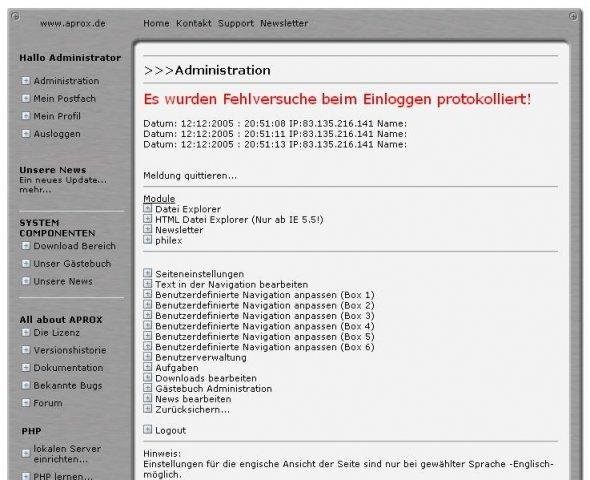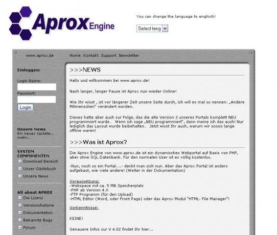 Aprox Engine CMS System with Flat File database. For further informations please see my page at www.aprox.de