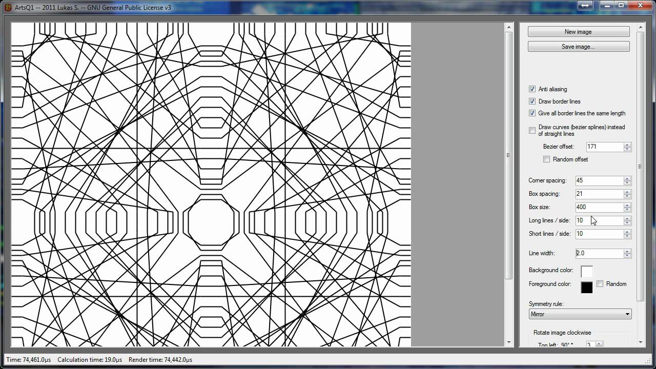 This application creates more or less random images by connecting certain lines on a frame.