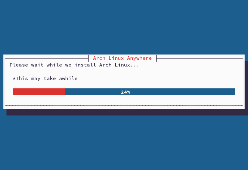 This project is no longer on sourceforge. Project has moved to: http://arch-anywhere.org