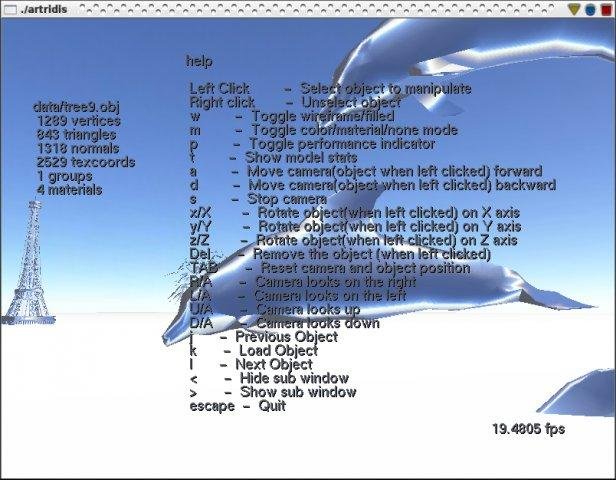 Artridis is an OpenGL application meant to display wavefront objects in a 3D world.