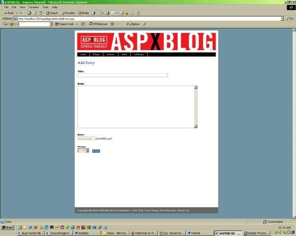 ASPXBLOG is a free web log application written in C#.net and uses XML to store the site data instead of setting up and using a database.