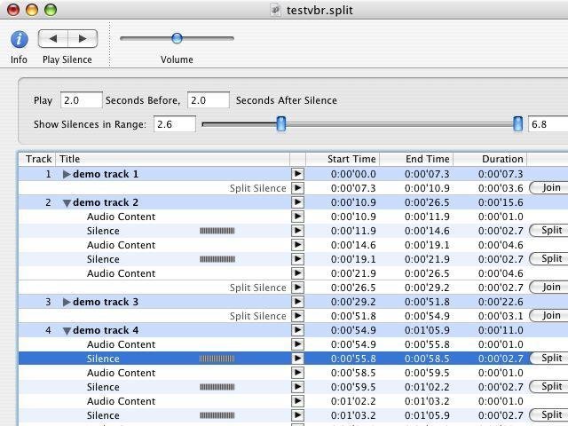 AudioSlicer is a Cocoa GUI application that finds all silences in an audio file and allows you to split it into several smaller audio files and to name/tag them properly. For now only MP3 is supported but other formats may come in the future.