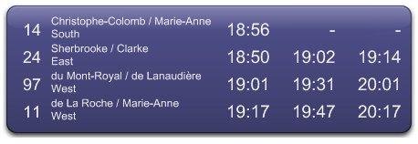 Auto-Bus is a widget that runs on the Yahoo! Widget Engine. It provides quick, elegant and customizable access to bus times for any transit system for which such information is available online. Files to support each transit system can be made easily.