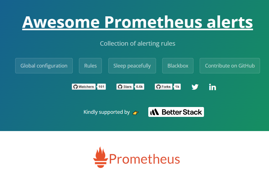 Awesome Prometheus Alerts is a collection of pre-configured Prometheus alert rules, help users set up effective alerting for infrastructure monitoring.