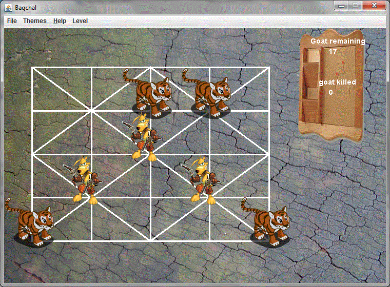 A simple game originated from Nepal where two users or single user can play the game. There is two key component in the game i.e tiger and goat. Goat needs to trap the tiger in-order to win the game. And if tiger is able to eat 4 goats tiger wins the game.