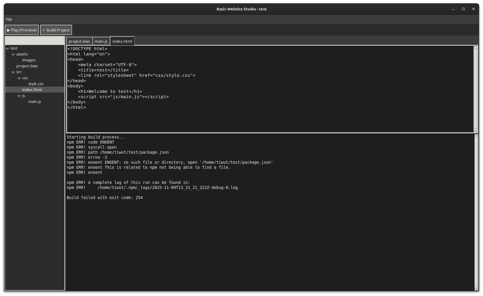 A simple, lightweight code editor for basic web development, written in Python using the standard Tkinter GUI toolkit. This application is designed to run without any external Python libraries (like PySide6 or PyQt), making it ideal for easy distribution on Linux systems, such as in a .deb package.