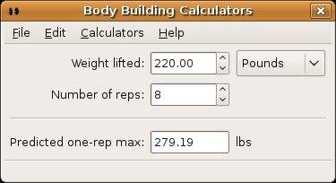 BBCalc (BodyBuilding Calculators) is a set of calculators related to body building and fitness topics.