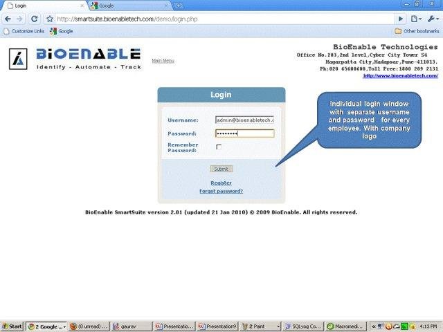 Visit : http://smartsuite.bioenabletech.com . BioEnable SmartSuite makes easy for you to manage employees using latest web based collaboration tools and intuitive software.It is a Attendance time tracking software , HR Management software