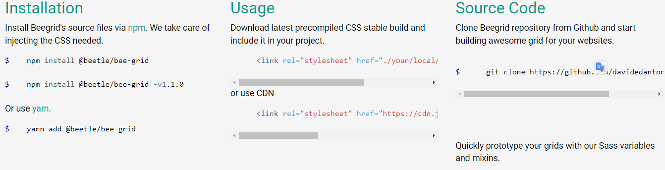 - Install Beegrid's source files via npm
