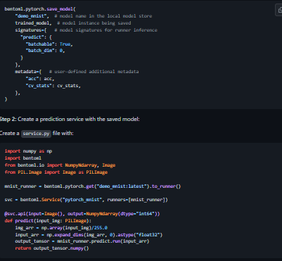 BentoML simplifies ML model deployment and serves your models at a production scale. Support multiple ML frameworks natively: Tensorflow, PyTorch, XGBoost, Scikit-Learn and many more! Define custom serving pipeline with pre-processing, post-processing and ensemble models. Standard .bento format for packaging code, models and dependencies for easy versioning and deployment. Integrate with any training pipeline or ML experimentation platform. Parallelize compute-intense model inference workloads to scale separately from the serving logic. Adaptive batching dynamically groups inference requests for optimal performance. Orchestrate distributed inference graph with multiple models via Yatai on Kubernetes. Easily configure CUDA dependencies for running inference with GPU. Automatically generate docker images for production deployment.