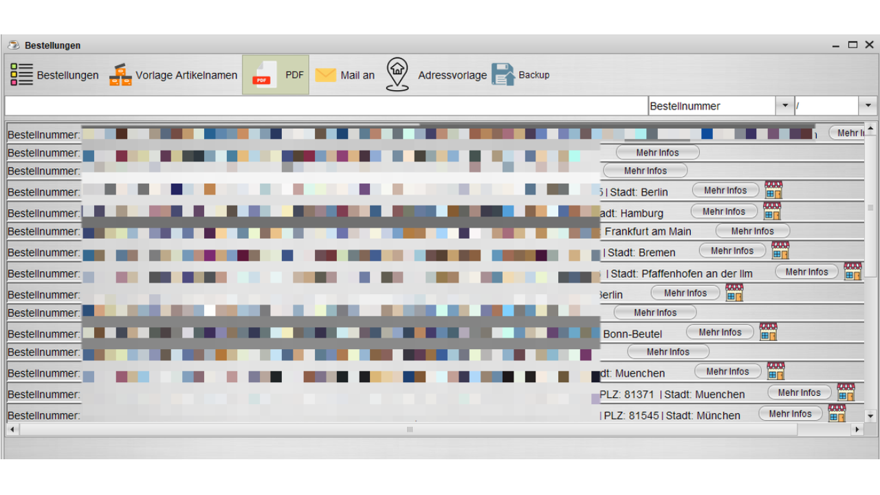 - Und es gibt die Möglichkeit alle Bestellungen in einer PDF anzuzeigen. Im Reiter PDF oben.. Sollte diese Funktion nicht funktionieren, kann man versuchen alternativ die JAR Datei über die Eingabeaufforderung starten