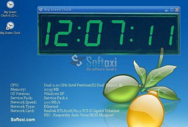 A simple no frills large green seven segment desktop clock. Intended for use as a large clock display on netbooks sized screens. The Big Green Clock is avalable for the Windows and Linux operating systems.