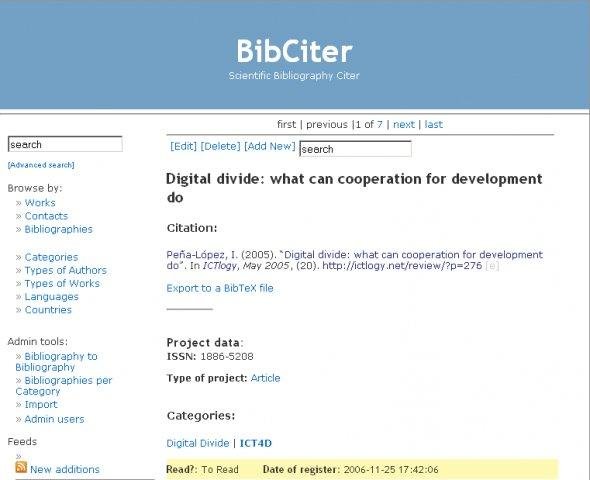 BibCiter is an online bibliographic manager, to privately manage your bibliography or openly publish bibliographies on the web. Multiuser (admin, edit, external). Lists in APA standards. BibTeX import/export. RSS feed. WP styles. Visit website for demo.