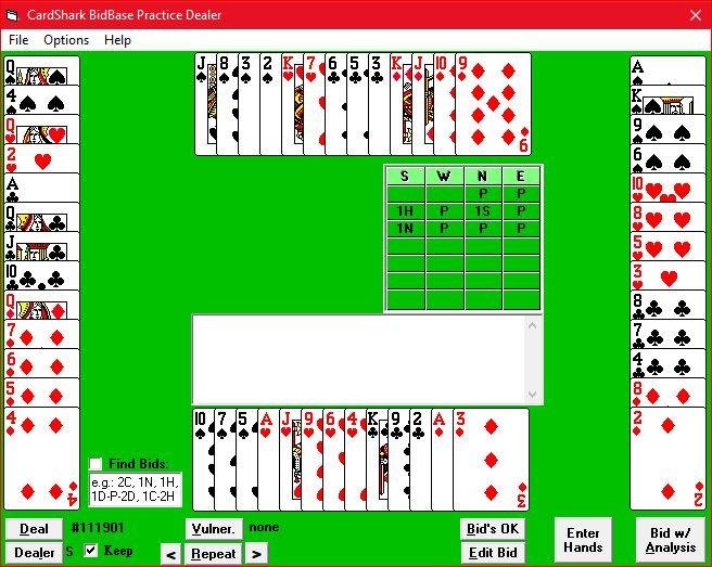 Accompanying programs include a bidding practice program, database editor, hand/bidding simulator, hand valuation program, and HTML/text file creator/viewer for creating and reading documentation files for bidding systems and conventions as well as for the BidBase programs.
